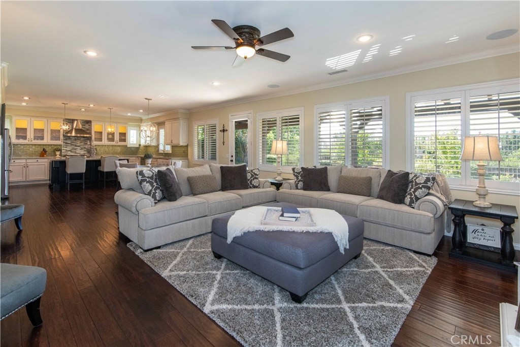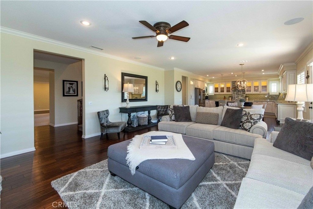 “The Art of Building Well” is the trademark of Davidson Communities & the GUARD GATED community of Greer Ranch in Murrieta is the ideal setting for a home of such caliber. Only 85 of the 693 homes in Greer Ranch were built by Davidson & they poured everything into this award winning architectural design. Located on a single loaded (homes on only 1-side of the street) premium view lot this home was built for entertaining, with an elaborate California Style Entry with 3 French Doors. With over 4300 Sq. Ft. this home is a true 6 bedroom 4.5 Bath home with an additional Office and 2nd living room. The home shows like a model inside, with a completely remodeled kitchen, no expense was spared! Crown Molding, Plantations Shutters, wrought iron Glass Front Door, Built-ins throughout, Wood Floors, Sculpted Carpet, Quartzite Counters, Glass Cabinet Doors, Built-Ins in the Closets, Surround Sound, Ceiling Fans, 3 Fireplaces, Designer Paint and that’s just the interior! Outside is masterfully landscaped with a Spanish inspired Patio cover with oversized beams and exterior speakers. Living is easy when you have no rear neighbors & are enjoying the views Greer Ranch is known for & it only gets better from the Balcony off of your master bedroom! One of the greatest attributes of a Davidson home is its ability to accustom multi-generational living. With 2 living room areas & a large bedroom with ensuite/ + office downstairs, you can easily create enough space for additional family members.