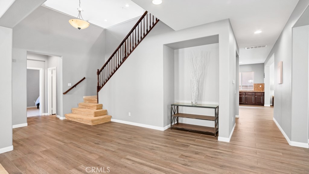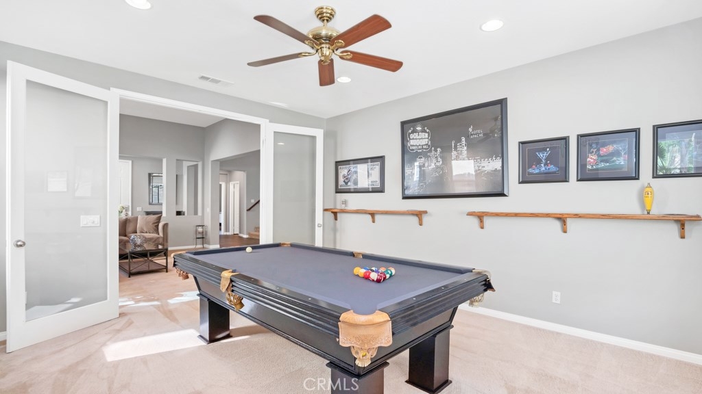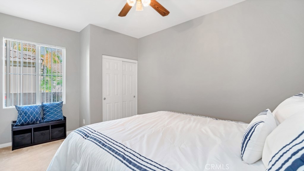 Welcome home to the prestigious, 24-hour guard-gated community of Greer Ranch! This beautiful home boasts over 3900 sqft, 4 bedrooms and 3 bath with 1 bedroom downstairs plus a large office/den that could serve as the 5th bedroom, and PAID OFF SOLAR! As you enter, you will be greeted with an abundance of natural light, beautiful contemporary hues of gray-neutral paint throughout the whole house and upgraded tile flooring that is textured similarly to wood flooring. Just off the entrance is the formal living room with the office connected and the separate formal dining room. Enjoy cooking in your upgraded open-concept kitchen, with stainless appliances, endless granite countertops, built-in double oven, butler pantry with wine fridge and enough cabinets to hold all your holiday dishes. Have fun on family nights in the large open family room, next to the cozy fireplace. Upstairs you will find a huge loft large enough for full-size video games or nerf wars. Or if billiards is your game, there is plenty of "cue" room here, with walls beckoning an 85" flat screen to cheer on your favorite sports team! Two large bedrooms adjacent to the loft allow the kids to have a sudden "soft crash landing" into bed from playing too hard! The backyard has concrete hardscape and a lattice patio cover. The expansive master bedroom is saved best for last, with a large walk-in closet. Greer has amazing amenities such as a large community pool, parks, hiking and biking trails! This truly a must see!