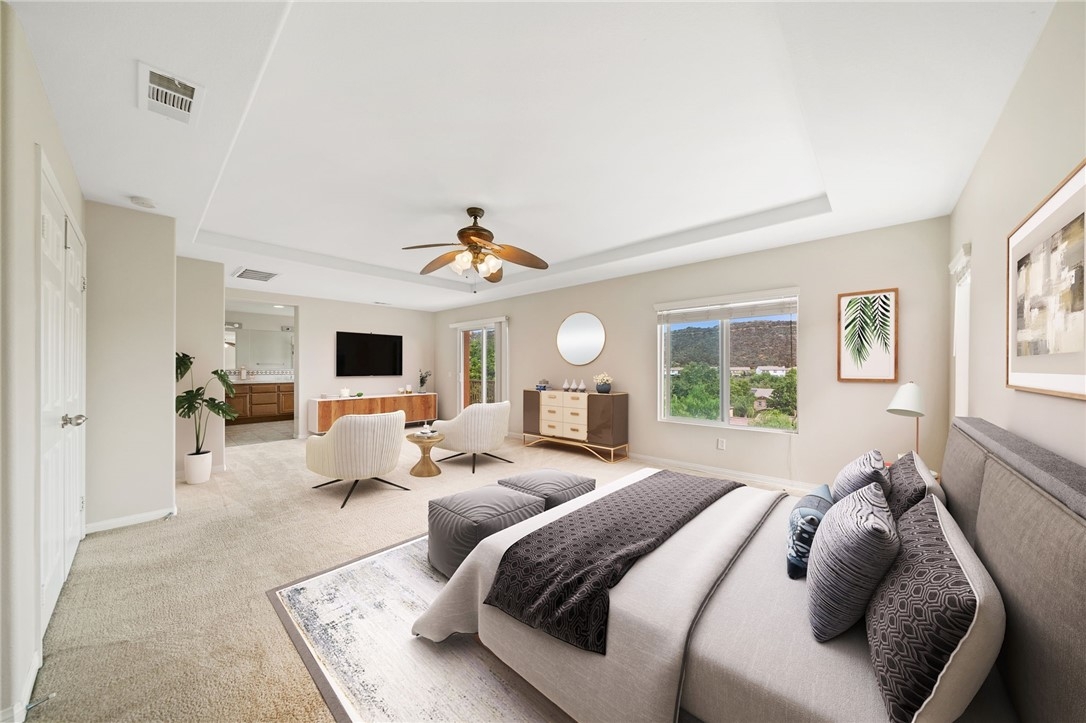 Very motivated seller!!! STUNNING!!! Fantastic Executive home. Great Views!!! This large, upgraded and beautiful home is located in the gated community of Greer Ranch. This community is one of the safest and most desirable neighborhoods in all of southern California. Grand entry with high ceilings brings you into this open floor plan with 11 feet ceilings in the living room. A large study/office is next to the large formal dinning area. The very upgraded kitchen with high quality granite counter tops and upgraded cabinets look into the huge family room with a warm fireplace. The kitchen has stainless steel appliances including double oven, Microwave, cook top, dishwasher and a large wine cooler in the pantry. First floor offers a guest bedroom and full bath. Second floor has the unbelievable, huge loft area for your family to enjoy playing pool, pin pong, hocky and other entertainments. A cozy office area can be used to work or school work for children. Two bedrooms and a large bathroom with jack and jill are included in the second floor. The master suit has a very large balcony with fantastic views of the Temecula/Murrieta valley, hills, sunrise/sun sets/ fogs and rainbows. A jacuzzi tub, a separate shower area and a very large walk-in closet complete the second floor. Greer Ranch in very close to both freeways 15 and 215 for commuters. It has 24 hour guard protection, Junior Olympic size pool, Kiddy pool, large spa, Basketball area, club house for celebrations, miles of hiking and biking area and playgrounds for children. It is very close to award winning Murrieta school District, Medical facilities, shopping, restaurants and Pechanga Resort. The home has new air-conditioner unit, new water heater that were purchased few months ago. It also has new paint and landscaping.