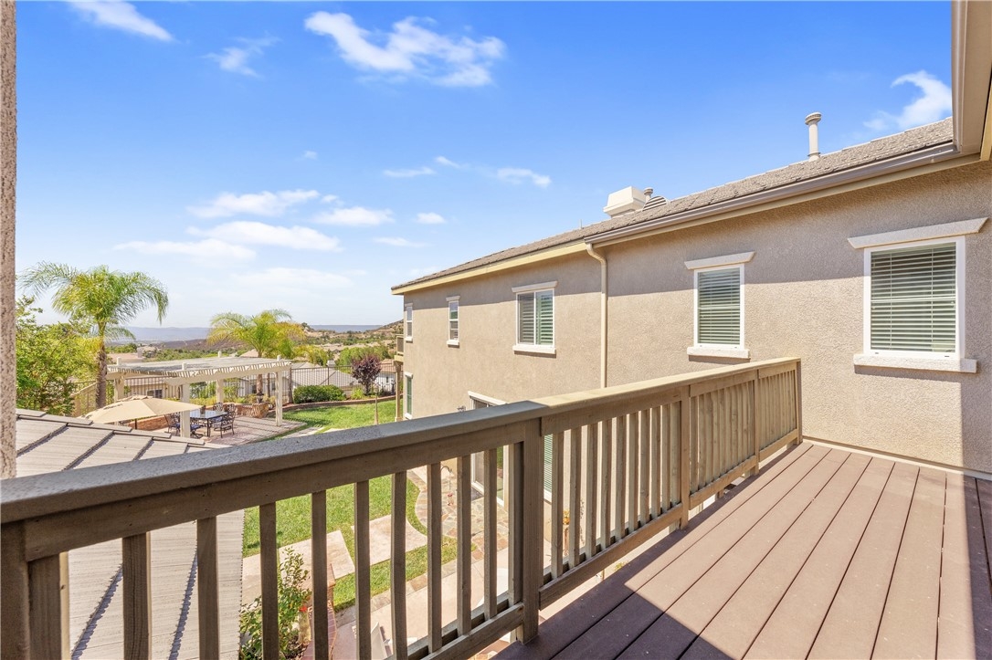 Introducing a home where pride of ownership and natural beauty are ever present; including amazing views & an over-sized lot in the desirable guard gated community of Greer Ranch! Set amidst the top of the foothills, where you can watch the coastal breeze roll in as the sun goes down is the start of your next chapter. Beautiful curb appeal with a lovely porch set the tone for the home, which includes over 3,600 sq. ft. The home is full with natural light & the open downstairs floor-plan includes a large bedroom and full bathroom. Designed for entertaining the large kitchen is upgraded with granite counters, stainless steel appliances, large pantry and opens to both the formal dining and living room. Upstairs you have 3 Bedrooms that share a full bath (with dual vanities), a convenient laundry room, tech center and a 400+sq.ft bonus room with its own balcony. The master retreat is complete with its own sitting area, fireplace, beautiful open bedroom and a private balcony that is sure to get used for morning coffee and evenings with your loved ones. The master bath is also nicely appointed with a separate tub/walk-in shower and a master closet that has all the space that you have been looking for. Outside you are transferred into a HUGE private oasis, with a beautiful covered patio, built-in BBQ and mature landscaping. Located in the gentle rolling hills of Murrieta just west of the 215 and minutes away from the 15 freeway. This Guard gated community offers a charming clubhouse, pool, kids pool, spas, and a variety of parks and basketball courts. Call today for a private showing.