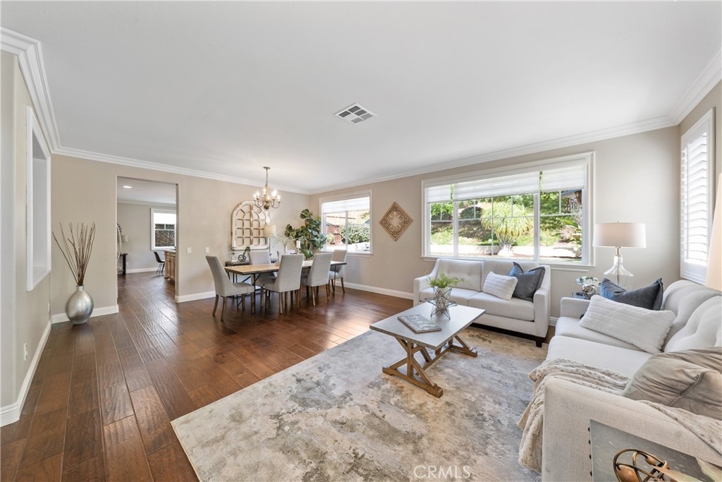 This BEAUTIFUL home in the PRESTIGIOUS GUARD-GATED COMMUNITY of GREER RANCH is a MUST SEE! ~ 2,945 sq ft, 4 bedrooms, 3 full baths, PLUS a MAIN FLOOR OFFICE. This TURNKEY home sits on a POOL-SIZE LOT at ~ 1/4 acre, private & perfectly situated to provide afternoon/evening shade on your backyard patio with lush landscaping, mature trees, & plenty of grass for pets and children to play! As you enter the front door, you are greeted by the VIEWS of the backyard, hardwood floors & an OPEN living/dining room area with lots of windows for natural light with custom window coverings and PLANTATION SHUTTERS. The family room is quite inviting with a FIREPLACE, ceiling fan, recessed lighting, & built-in media niche. It's open to the REMODELED & SPACIOUS kitchen which includes an over-sized & CUSTOM EAT-IN ISLAND great for entertaining with a pendant farmhouse light overhead, granite counters throughout, STONE SINK w/UPGRADED FAUCET & NEWER STAINLESS STEEL APPLIANCES. Downstairs won't disappoint even the most particular buyers with HARDWOOD FLOORS, CROWN MOULDING, UPGRADED BASEBOARDS, UPGRADED window/door molding, NEUTRAL PAINT + a FULL BATH located near the MAIN FLOOR OFFICE(POTENTIAL BEDROOM #5) with double FRENCH DOOR ENTRY. Upstairs you'll find the UPDATED PRIMARY SUITE w/ LARGE walk-in closet, dual sinks, shower and soaking tub. There are 3 nice-sized additional secondary bedrooms all with ceiling fans , the secondary bathroom with dual sinks & granite counters, and the laundry room with storage and granite counter space. Bottle Brush WY also has a NEWER WATER HEATER, ATTIC FAN & a 3 car garage with lots of storage. And are you driving an electric vehicle these days with the price of gas? Well, then you'll be glad to hear that the garage has a 240V ready to give you a charge! Greer Ranch is tucked into rolling hills with expansive views, has 24 HOUR SECURITY, a COMMUNITY POOL, spa, clubhouse, parks, scenic hiking trails, community events, sport court & more! Easy access to the 15 & 215 freeways, near lots of shopping, including Target, Baron's, & the COMING SOON Costco within a few minutes drive, & within the TOP-RATED Murrieta Valley school district. Nearby entertainment includes the Temecula wineries, Old Towne Temecula, The Promenade Mall & Pechanga Casino. Hurry this one won't last!