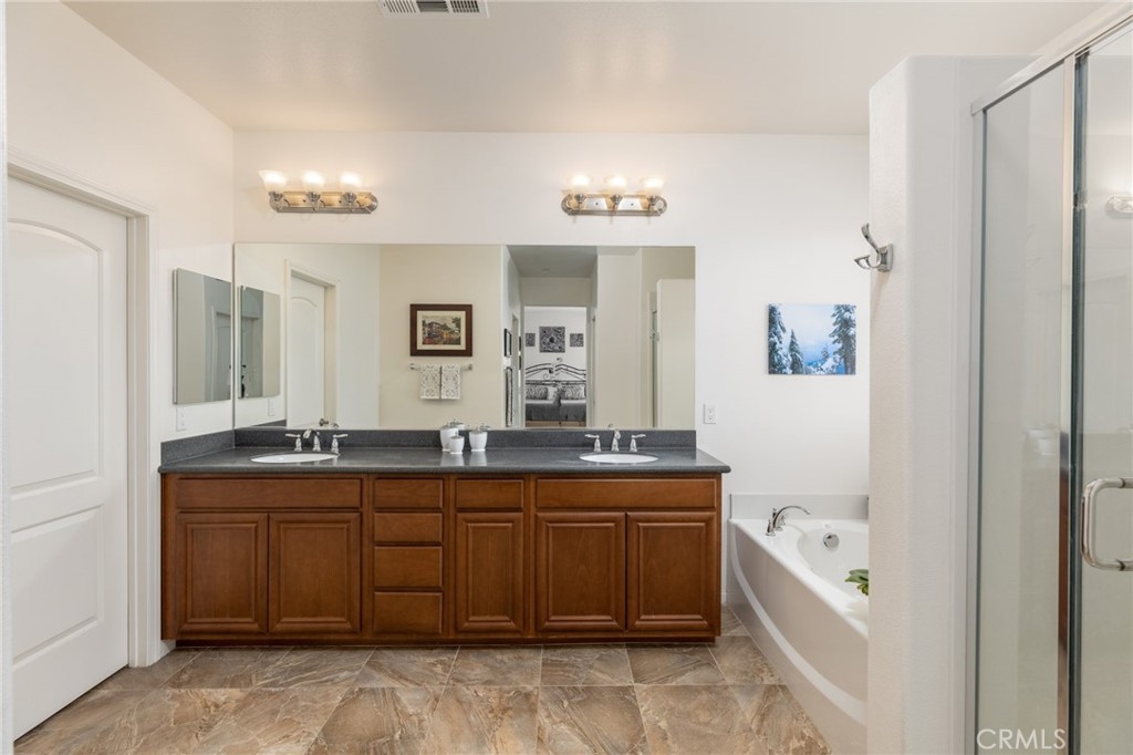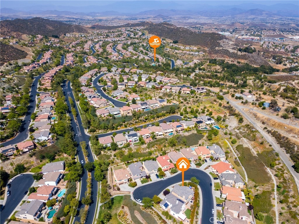 Beautiful 3104 sq. ft. well maintained home located in the prestigious, desirable guard gated community of Greer Ranch. Centrally located in Murrieta, this highly upgraded home sits on a large corner lot of a cul-de-sac that overlooks the community park and has views of the hills in both directions. The home has a great floor plan with a lot of usable living space. The home has four large bedrooms, three full baths, plus a retreat off the master bedroom. One of the bedrooms and baths are located downstairs. This is one of the newer homes in Greer Ranch, being built in 2013. The home features wood floors, elegant granite counters in the kitchen, with complementary subway tile backsplash and stainless-steel appliances. The home has hardwood plantation shutters installed throughout, upgraded counters in all bathrooms, and a full 3 car finished garage with epoxy floor. The home has two, low maintenance, paver stone back yards featuring water-wise plants. The lovely side yard is very private and has a dining room entry, while the other yard is off the family room. (Landscaping behind rear fence and east side of property maintained by the HOA) Living in the community of Greer Ranch is like living in a resort, year-round. It is a beautiful, gated community nestled against the hills with over 82 acres of open space, walking and biking trails, pool & spa, parks, sport club, club house and excellent schools. The location is perfect, being close to the Interstate 15 and 215 Freeways, providing quick access to San Diego, Riverside or Orange County. Close to all shopping, golf, equestrian theatre, with plenty of activities and entertainment.